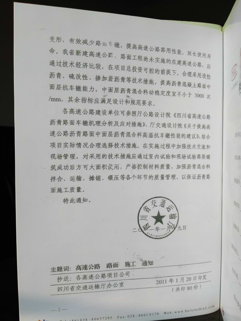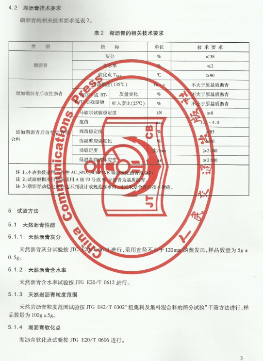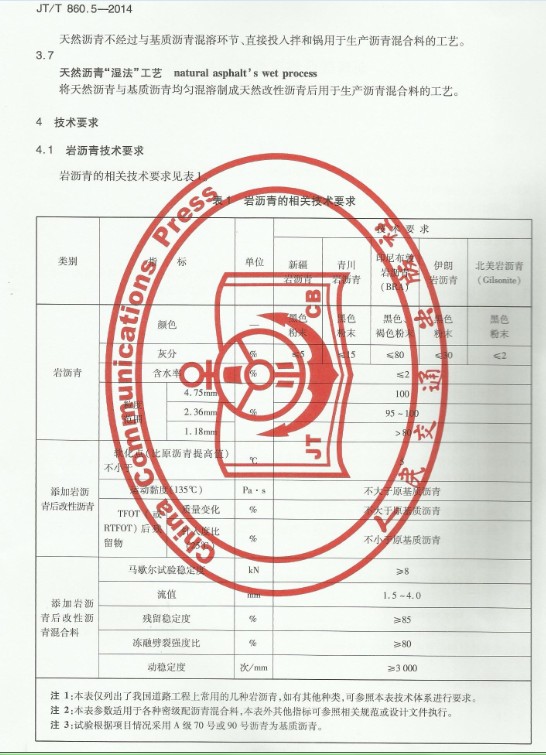 一、经过多次试验,其全部技术数据表明,布敦岩沥青的各项技术指标均符合印尼国家标准NO.P-2612-200《Product Specification For Buton Rock Asphalt for Use Pavement Construction》及我国交通部部颁标准JTI 036-98《公路改性沥青施工技术规范》的要求。