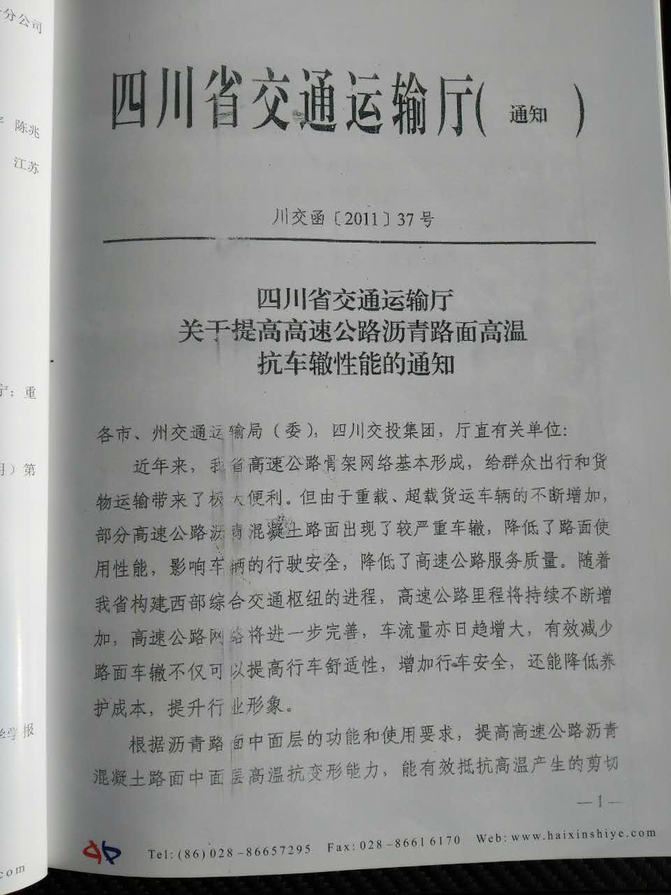交通部公路科学研究所对推广使用布敦沥青的意见